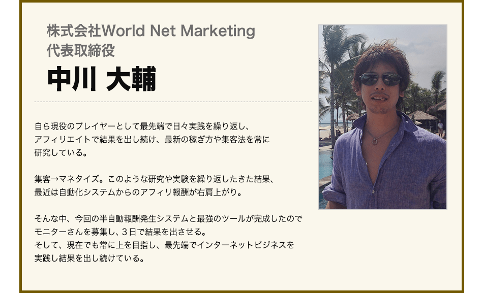 そんなときに中川さんから放置収入システムのモニターに誘われ、