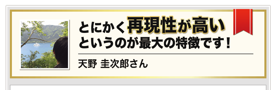 とにかく再現性が高い、というのがこのシステムやツールの最大の特徴です。